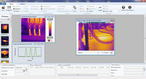 Comunicante, la cámara CA 1954 recupera mediante Bluetooth de forma simultánea las medidas necesarias (corriente, temperatura, humedad, punto de rocío…) procedentes de pinzas de corriente y de productos de medida ambiental.